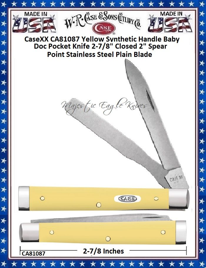 W.R. Case & Sons Cutlery CaseXX CA81087 Yellow Synthetic Handle Baby Doc Pocket Knife 2-7/8" Closed 2" Spear Point Stainless Steel Plain Blade