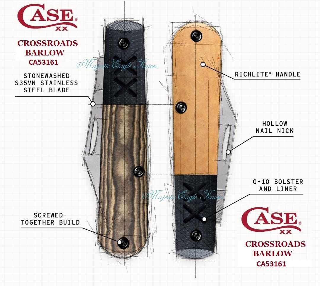 W.R. Case & Sons Cutlery CA53161 Case XX™ Barlow XR Crossroads Woodgrain Richlite S35VN Steel Pocket Knife! This Classic American Case Barlow XR is about 3-3/8 inches long (folded/closed) and weighs approximately 2.0 ounces. The handle is Woodgrain Richlite with Black Torx screws. The bolsters and liners are Black G10. This knife utilizes a 2-1/2" Clip Point blade with a hollow nail nick. Stamped with pattern number XR101009 1/2 S35VN, the blade material is CPM S35VN Stainless Steel with a Stonewashed finish. This Barlow XR is a professional-grade tool that comes with a Limited Lifetime Manufacturer's Warranty and is not designed nor intended to be used on or against humans. So, whether you're hunting for authentic cutlery to collect, a top quality knife to give as a gift, or a superior tool to use,