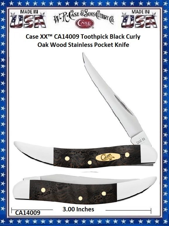 W.R. Case & Sons Cutlery CA14009 Case XX™ Toothpick Black Curly Oak Wood Handle 3.00" Closed 2-1/4" Long Clip Blade Stainless Pocket Knife