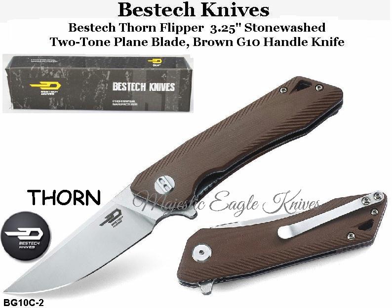 Bestech Knives BG10C-2 Bestech Thorn Flipper Knife 3.25" Stonewashed Two-Tone Blade, Brown G10 Handle Knife!