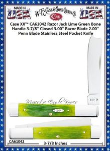 W.R. Case & Sons Cutlery CA61042 Case XX™ Razor Jack Lime Green Bone Handle 3-7/8" Closed 3.00" Razor Blade 2.00" Penn Blade Stainless Steel Pocket Knife