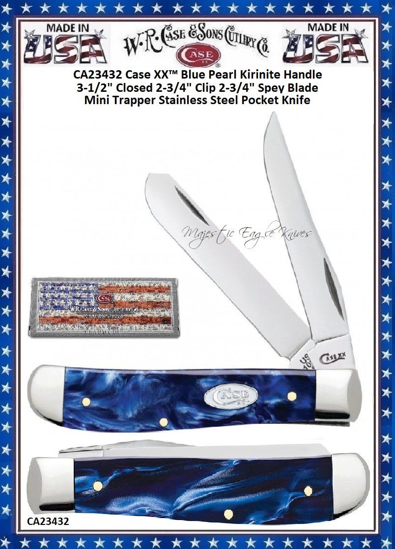 W.R. Case & Sons Cutlery CA23432 Case XX™ Blue Pearl Kirinite Handle 3-1/2" Closed 2-3/4" Clip 2-3/4" Spey Blade Mini Trapper Stainless Steel Pocket Knife
